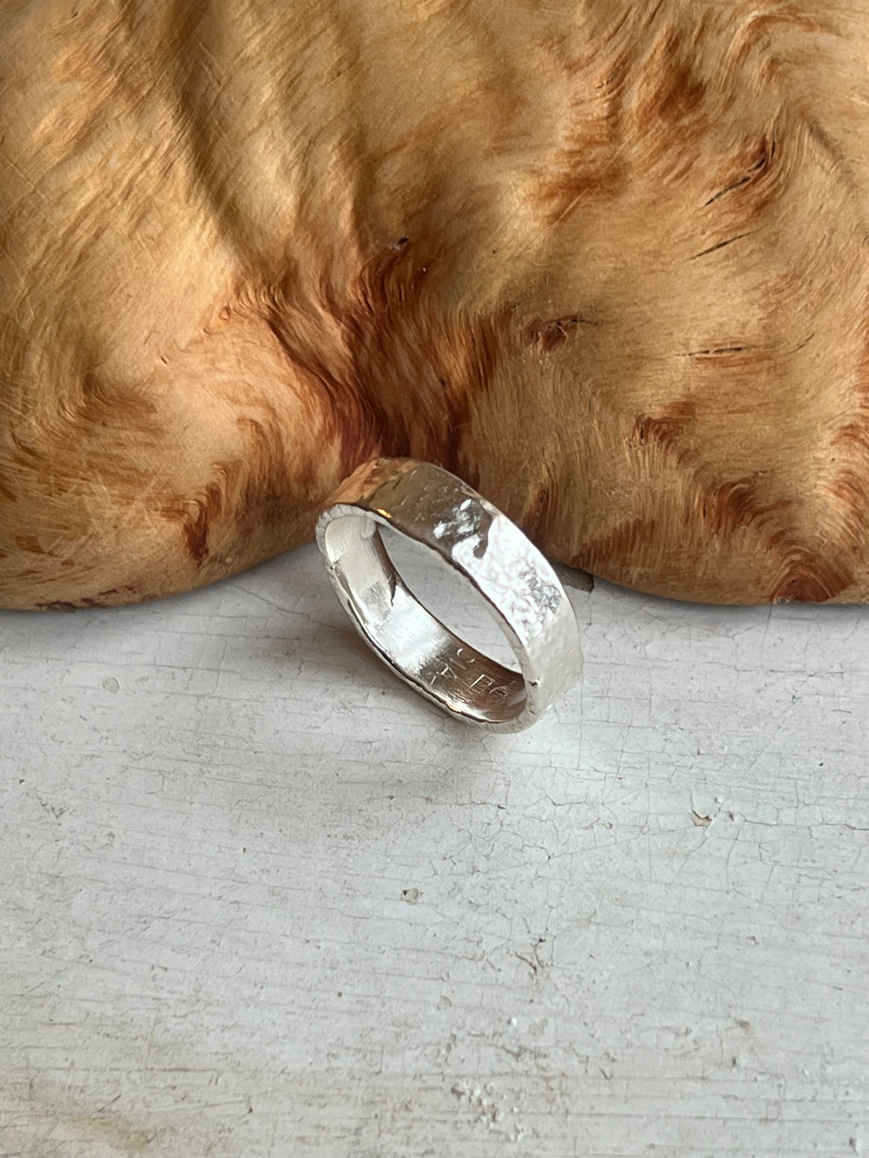 Silverring med ytstruktur.