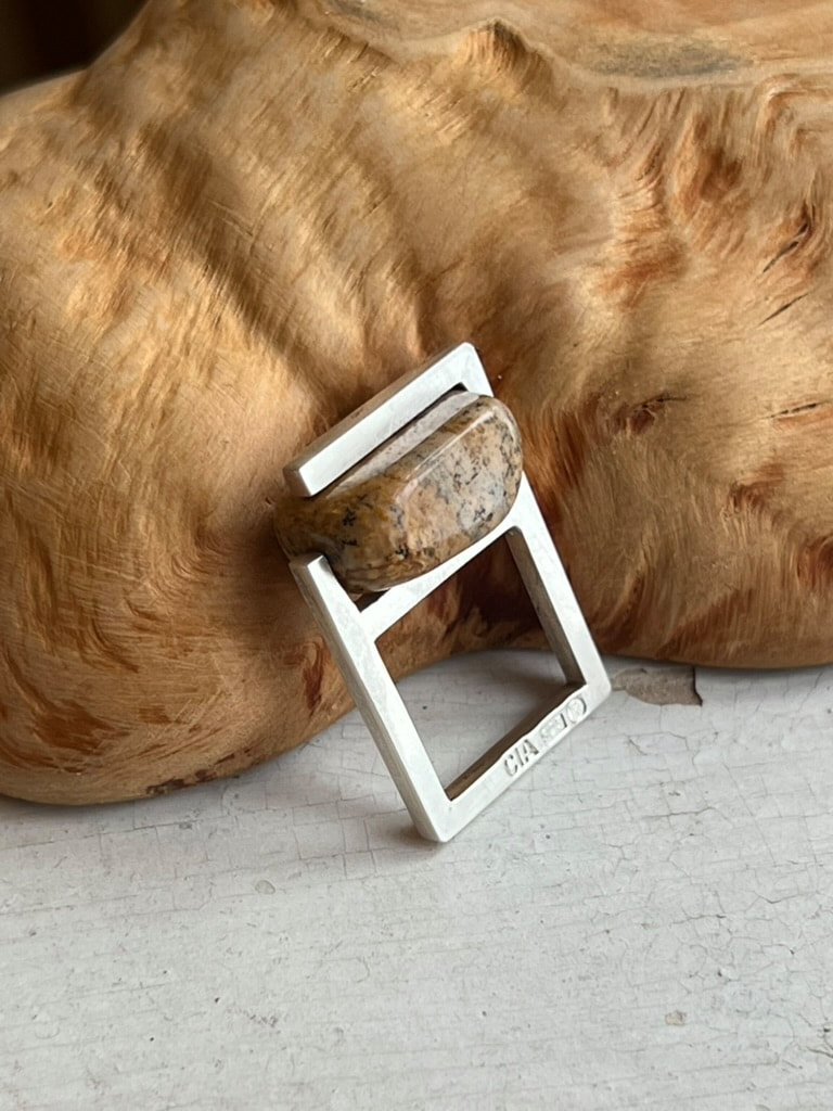 Ring med sten. Tillverkad och designad av mig i min verkstad.